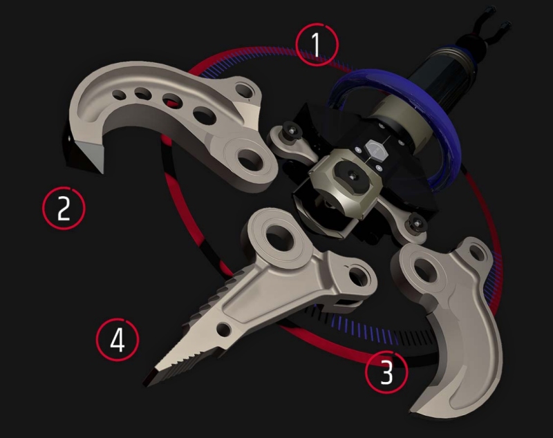 Na základě modulárního systému sestávajícího z jednoho hlavního tělesa a další sad speciálně navržených výměnných nožů, lze v několika krocích snadno přeměnit kleště CS350 na 3 různé nástroje: kleště k drcení betonu CC300, kleště ke stříhání materiálů MS250 a nebo kleště k rozpínání materiálů CS350. Výsledkem je mimořádně všestranný a funkční nástroj, který je nepostradatelným partnerem pro demolici v obytných budovách nebo hustě osídlených oblastech. Systém se vzájemně doplňuje o hydraulický rozpínací klín SP400, který využijete k trhání horninových nebo betonových bloků.